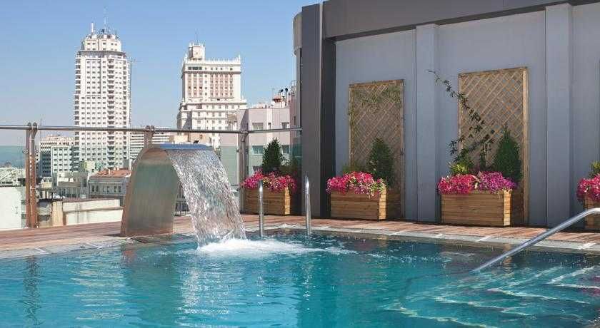 L'hôtel est situé au cœur de Madrid, à seulement 3 minutes à pied de la Gran Vía et du principal quartier commerçant de la ville avec ses nombreux bars, restaurants et boutiques. La Puerta del Sol se trouve à seulement 15 minutes et l'hôtel permet de facilement rejoindre le célèbre Palais Royal et les Jardins de Sabatini. L'aéroport de Madrid-Barajas se trouve à environ 12 km. Construit en 2009, l'établissement compte 200 chambres et abrite un élégant grand hall orné d'arches rehaussées de feuilles d'or. Il dispose également d'installations de conférence baignées de lumière naturelle, convenant parfaitement aux réunions et banquets. Le petit déjeuner et des repas simples sont servis dans le café de l'hôtel, qui bénéficie d'un accès à Internet. Les meilleures vues de Madrid peuvent être observées depuis le toit-terrasse qui dispose d'une piscine et d'un solarium.