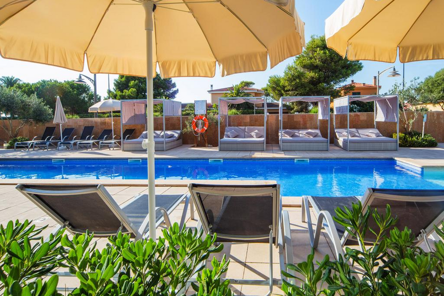 L'hôtel est à l'entrée du port pittoresque de Ciutadella, à environ 900 m de la belle baie de Playa Grande et à environ 1,1 km du centre historique de la ville. De nombreux commerces, des restaurants ainsi que les transports en commun sont à proximité. L'hôtel propose aussi une navette gratuite vers la plage de Cala n'Bosch (à environ 12 km).Rénové en 2001, l'hôtel dispose de 185 chambres, réparties sur 3 étages. Il comprend également un jardin de 8500 mètres carrés. Un hall d'accueil avec une réception ouverte 24h/24h vous attend. L'équipement du bâtiment comprend aussi un bar avec la télévision et 2 restaurants climatisés avec espaces non-fumeur. Un service de blanchisserie, une assistance médicale, un parking et un garage sont à votre disposition.Agréablement aménagées, les chambres climatisées sont équipées d'une salle de bain avec WC et sèche-cheveux, d'un téléphone avec ligne directe, de la télévision par câble et satellite, d'un lit double, d'un coffre-fort et d'un balcon meublé.Une piscine de plein-air avec bassin pour enfants, un pool/snack-bar et une terrasse ensoleillée avec des chaises longues et des parasols sont à votre disposition. Côté sport, tennis (1 court, surface rapide), tennis de table, aérobic, tir à l'arc (à partir de 18 ans), vélo/VTT, basket-ball et beach-volley sont proposés. Un programme d'animation veille jour et nuit au divertissement, avec sport, jeux, spectacles et danse. Licence: HA/0030/ME