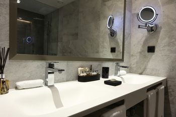 The Double rooms are equipped for your comfort with a high quality Queen Size springbox bed with Egyptian linen and a balcony. As a guest of a Double room you may enjoy 21 m2 of exclusivity. For entertainment purposes, the rooms are fitted out with a 42’’ Smart TV’ and an amazing Bose Bluetooth Soundsystem allowing guests to listen to up to two music channels at the same time in differentiated areas of the room. According to the room’s category there is a well equipped mini bar to enhance your urban experience. An Illy Coffee machine is available with capsules as a courtesy of the house, exclusive Molton Brown amenities take care of your wellbeing.