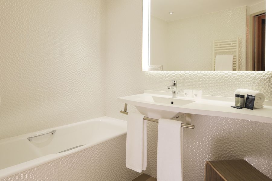 A quelques minutes du terminal 2F de l'aéroport Roissy Charles de Gaulle, votre hôtel Oceania**** Paris Roissy CDG, ouvert en septembre 2014, est un hôtel spa 4 étoiles idéalement situé!Depuis l'extérieur, vous devinez l'espace détente et bien-être avec piscine intérieure chauffée, jacuzzi, hammams et salle de fitness, surplombé par une majestueuse verrière. Vous pénétrez ensuite dans le hall, et vous êtes conquis par l'ambiance zen et le design contemporain qui règne dans cet hôtel flambant neuf,décoré d'un magnifique aquarium de 3 000 litres. Une fois à l'intérieur, le tumulte de l'aéroport laisse place au calme grâce à une parfaite insonorisation de tout l'hôtel. Au total, 150 chambres modernes, confortables, au design unique et avec salle de bain ouverte sont à votre disposition.