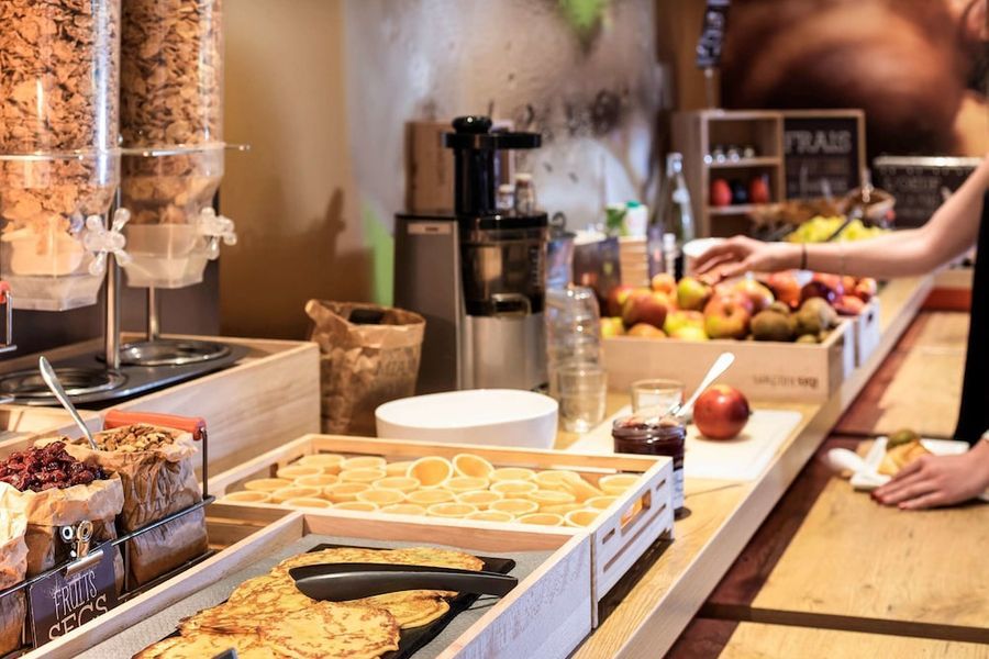 Au restaurant de l'hôtel, vous pourrez déguster une cuisine française traditionnelle. Le petit-déjeuner buffet comprend des produits sucrés et salés avec des œufs, une salade de fruits, des yaourts et des jus de fruits. Des pâtisseries et des muffins fraîchement préparés sont disponibles, ainsi que des boissons chaudes et un fruit à emporter. Une option plus légère est servie en dehors des heures habituelles de petit-déjeuner à partir de 04h00. À la réception, vous trouverez du matériel de repassage et des chauffe-biberons.